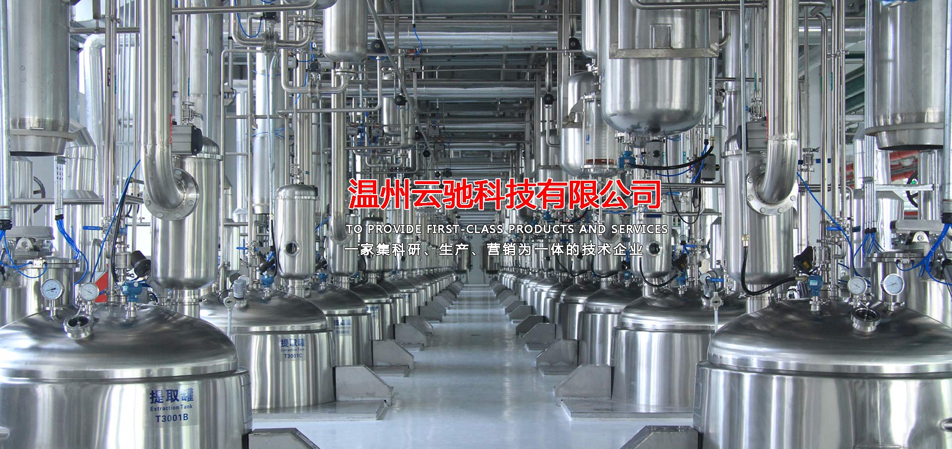 溫州云馳科技有限公司是一家集科研、生產(chǎn)、營銷為一體的技術(shù)企業(yè),本公司生產(chǎn)的中藥提取、濃縮、蒸發(fā)及有機溶媒回收設(shè)備,衛(wèi)生級不銹鋼容器設(shè)備,衛(wèi)生級管道配件等系列產(chǎn)品,范圍涵蓋制藥工程、乳品工程、生物工程、化工工程等領(lǐng)域,目前,本公司產(chǎn)品包含八大系列和28類品種,分別為中藥提取設(shè)備、濃縮設(shè)備、純化分離設(shè)備,酒精回收設(shè)備,配液系統(tǒng)設(shè)備,食品乳品機械設(shè)備,不銹鋼容器設(shè)備以及輔助配套設(shè)備等,力爭為廣大客戶提供滿意的交鑰匙工程服務(wù),目前,本公司已與多家科研院所及相關(guān)設(shè)計單位、行業(yè)協(xié)會、技術(shù)專員合作,建立了完善的科研開發(fā)體系,技術(shù)力量雄厚,擁有先進的質(zhì)量保證體系,我們將打造一支素質(zhì)高,技術(shù)精,服務(wù)熱情的職業(yè)化隊伍,為廣大客戶解決設(shè)備工藝上的需求和難題并為廣大客戶提供優(yōu)質(zhì)的服務(wù)。